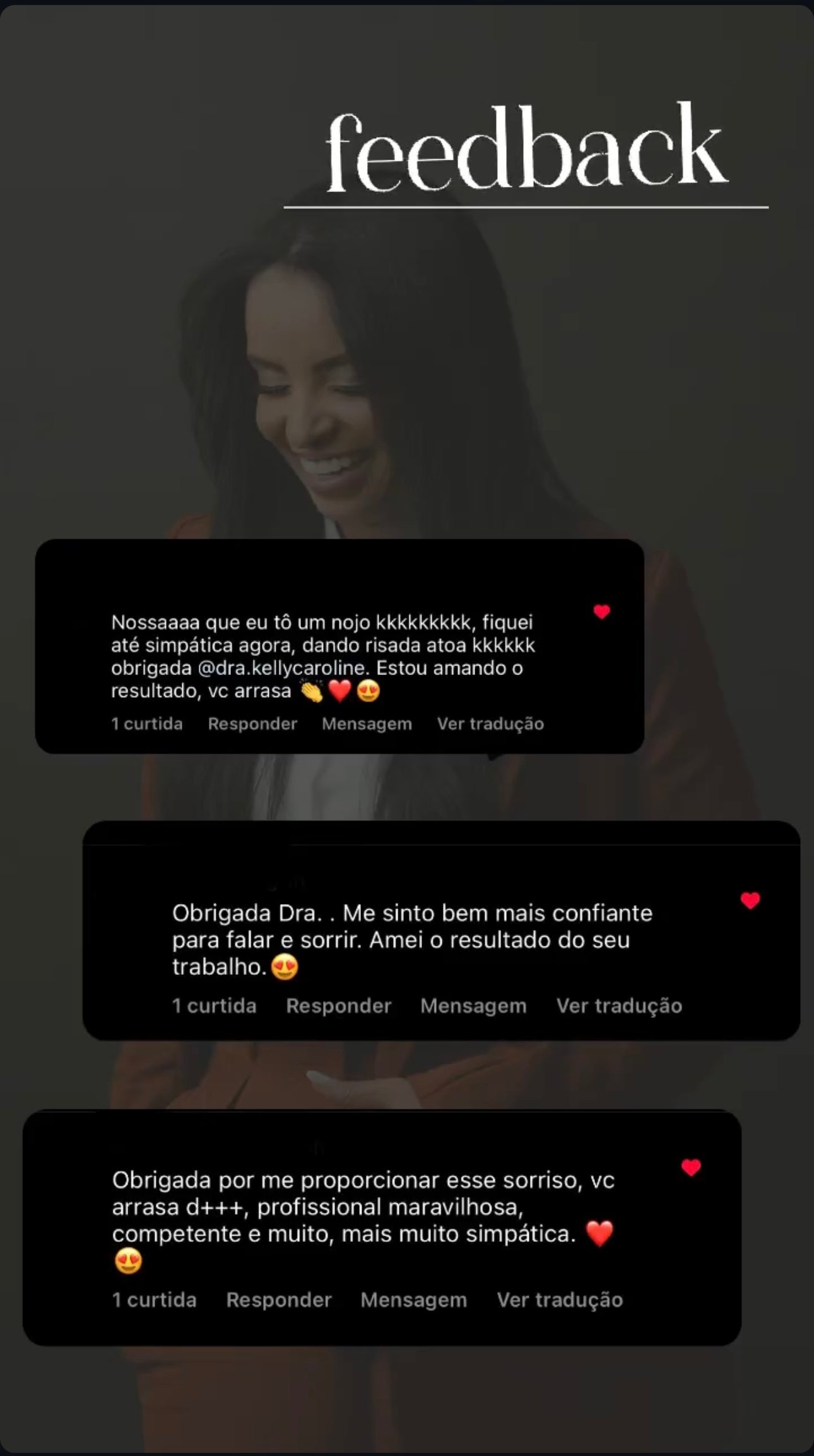 Desde 2018, ajudo pessoas a conquistarem sorrisos mais bonitos e saudáveis. Sou formada pela Universidade Nove de Julho e tenho especialização em odontologia estética, com foco em lentes de resina composta, laminados cerâmicos e otomodelação. Estou sempre me atualizando para oferecer o que há de melhor em técnicas e resultados.